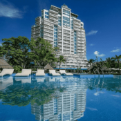 Experience a 7-night stay at the Andaman Beach Suites Hotel . Starting from 799£/+Tax. Offering ⭐⭐⭐⭐ star services and double-sharing rooms perfect for couples and friends. The package includes comfortable 4-star accommodation, daily breakfast featuring international and local dishes, and return flights from London. Guests can enjoy a range of beverages, from cocktails to fruit juices, available for purchase at the resort. This package ensures a pleasant and memorable stay with essential amenities and delightful dining options.